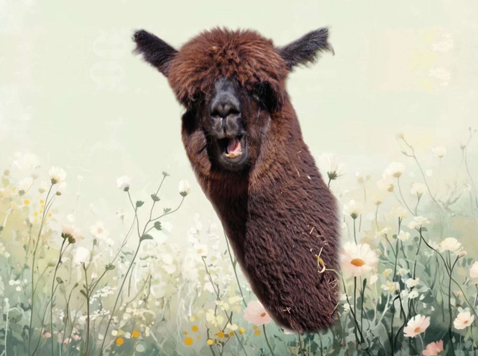 Guess de Luziers est la plus jeune du troupeau et cela se remarque clairement au sein du groupe. Elle teste régulièrement les limites et provoque parfois de l’agitation parmi les autres alpagas. Son comportement est joueur et provocateur, ce qui fait d’elle une véritable petite « troublemaker » dans le troupeau.
