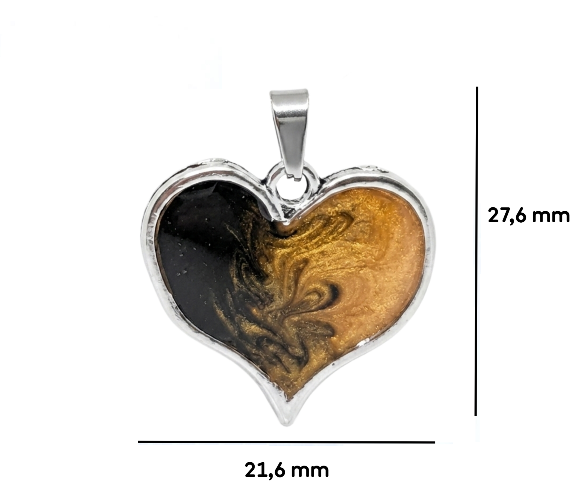 - Design: Hartvormige hanger met zwart-gouden swirl
