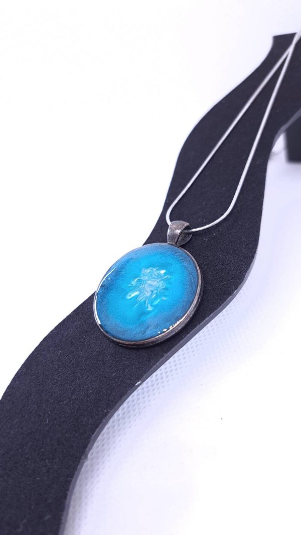 Laat je betoveren door de Ocean Lagoon, een uniek sieraad dat de adembenemende diepte van een tropische lagune direct naar jouw persoonlijke sieradencollectie brengt. Wanneer je deze hanger draagt, waan je je direct aan de rand van een kristalheldere zee, waar het licht op magische wijze speelt met het water en elke beweging een nieuwe, fascinerende reflectie creëert. Het diepe en levendige turquoise pigment is met uiterste precisie verwerkt tot een wervelend, organisch patroon dat doet denken aan de serene en rustgevende bewegingen van kabbelende golven. Het subtiele, verhoogde reliëf in het hart van de hanger geeft het ontwerp bovendien een dynamische uitstraling, waardoor het sieraad onder verschillende lichtomstandigheden steeds weer een ander, levendig karakter laat zien.